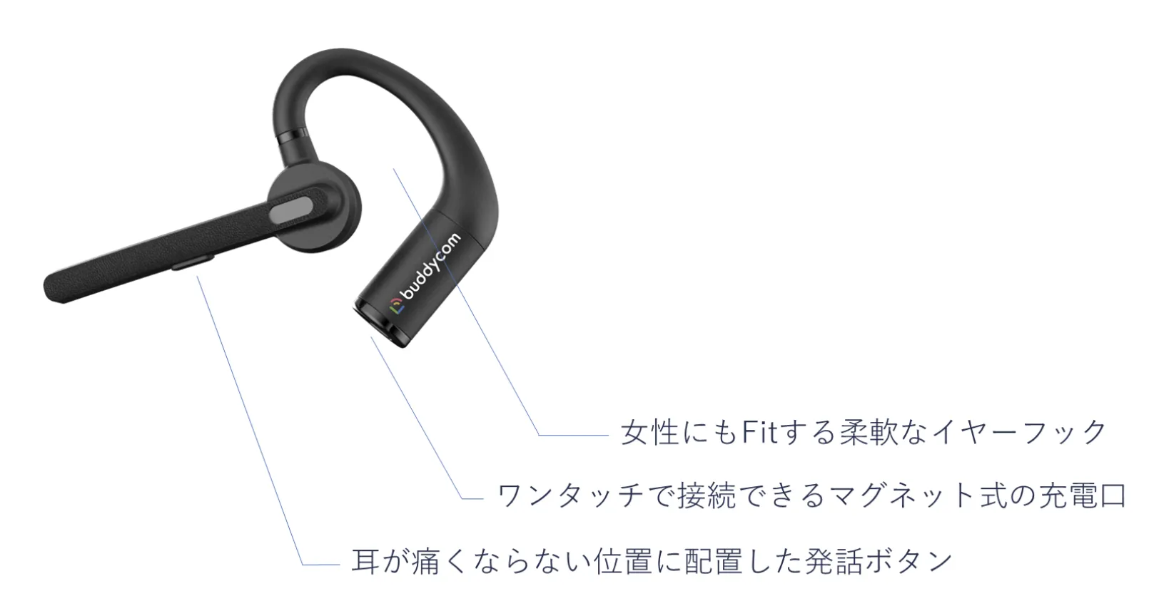 Buddycom Fit - AIノイズキャンセリング搭載Bluetooth耳掛けイヤホンマイク